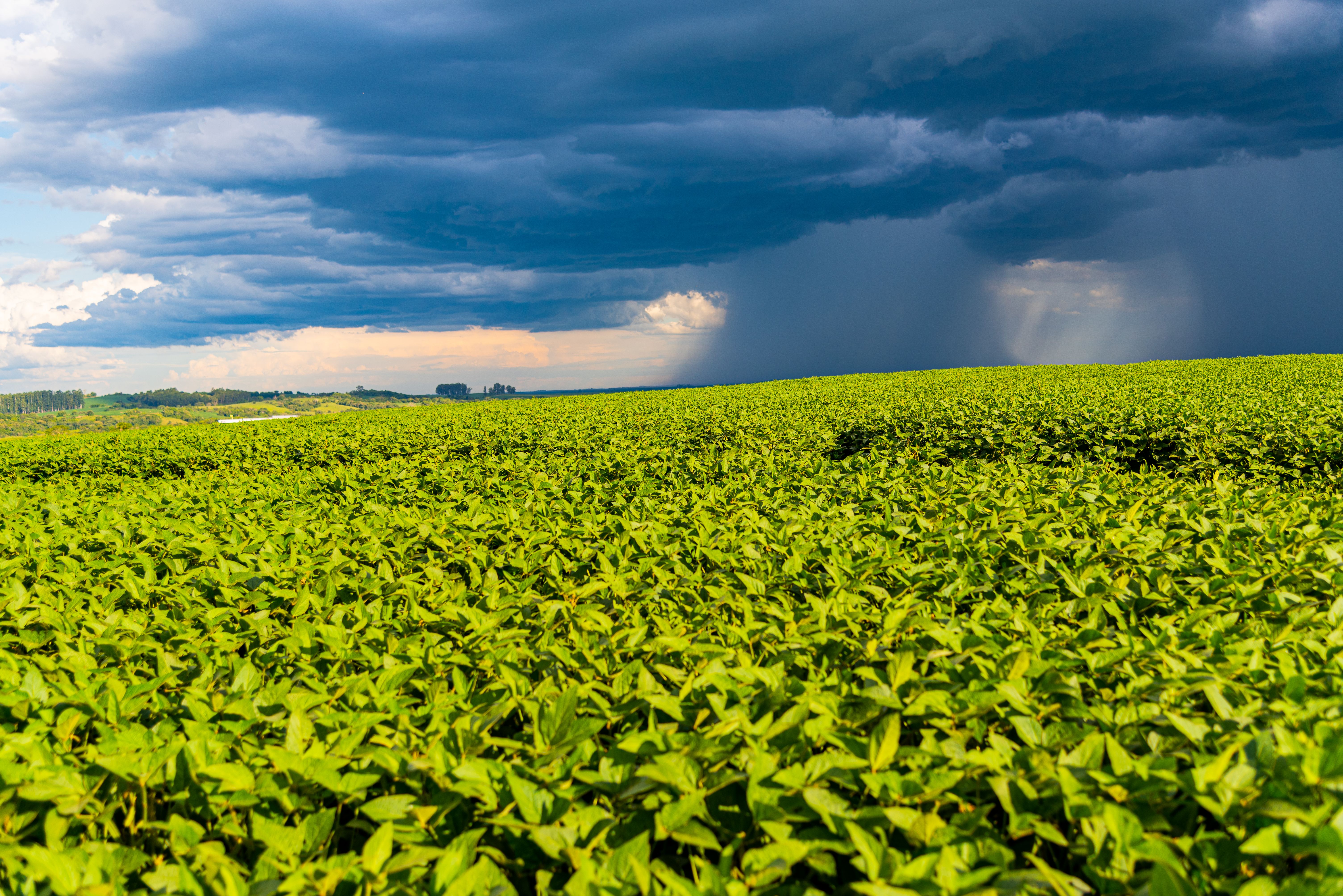 STORM OVER A SOY PLANTATION IN BRAZIL / ALEX RODRIGO BRONDANI / ISTOCK.COM