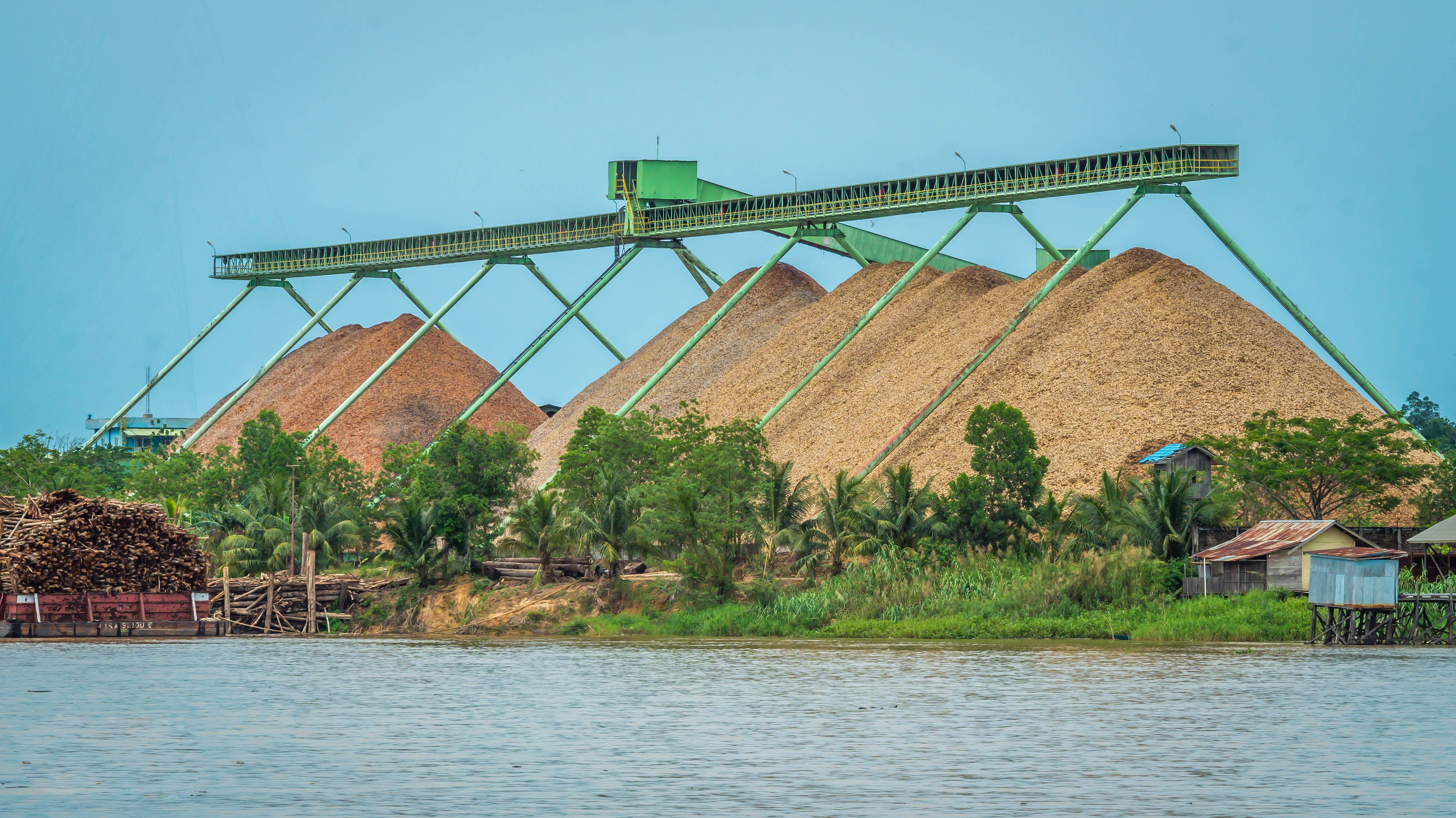 Pabrik serpihan kayu di tepi sungai Mahakam, Indonesia (Hilmawan Nurhatmadi/Shutterstock)